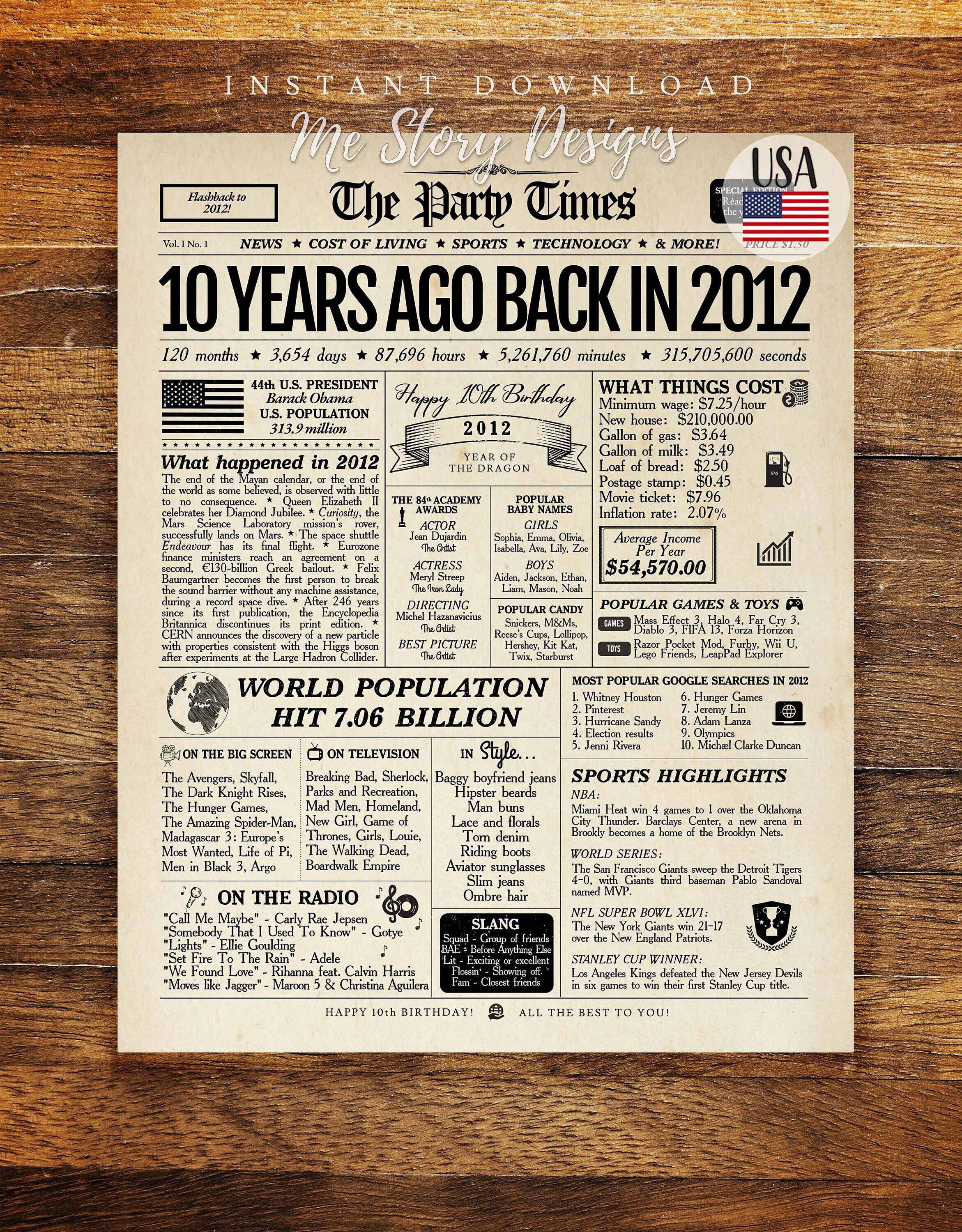 2012 Poster 10th Birthday Newspaper Sign Usa 2012 Birthday Etsy De